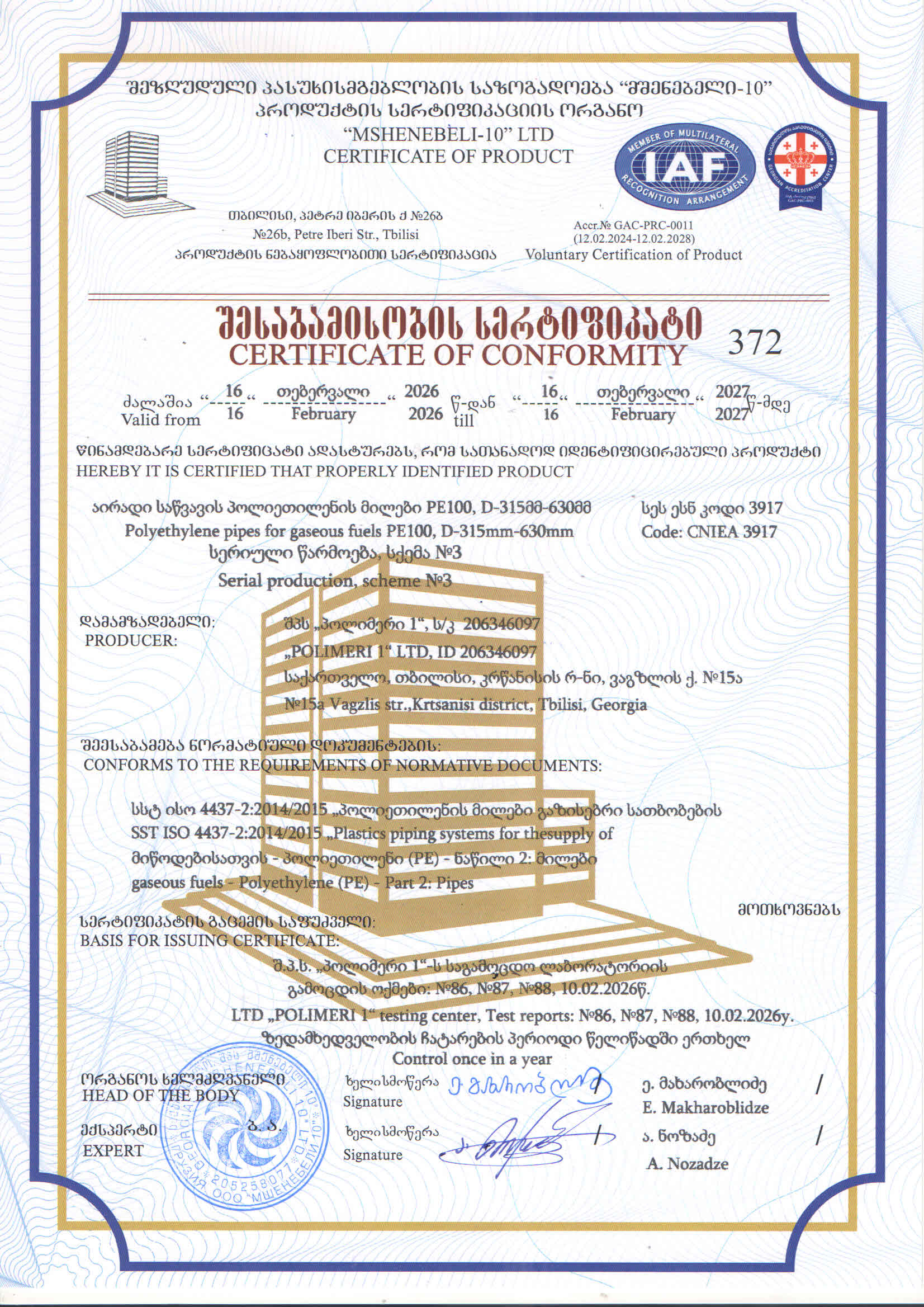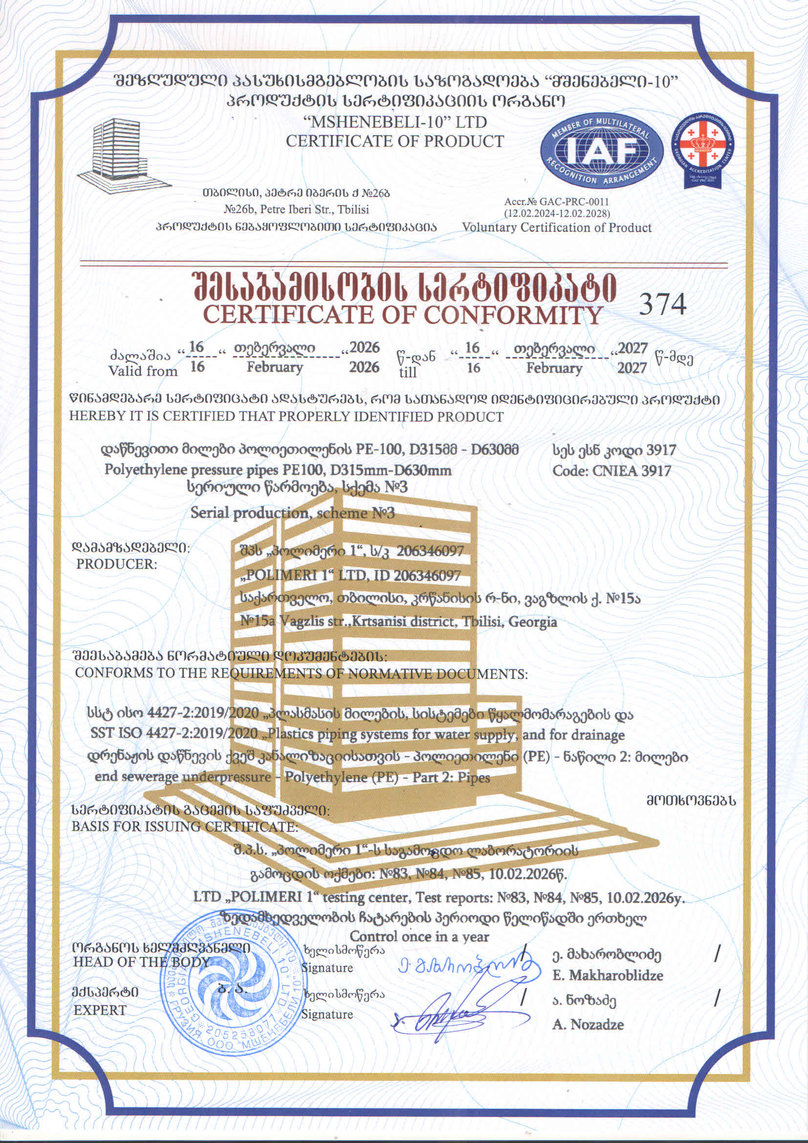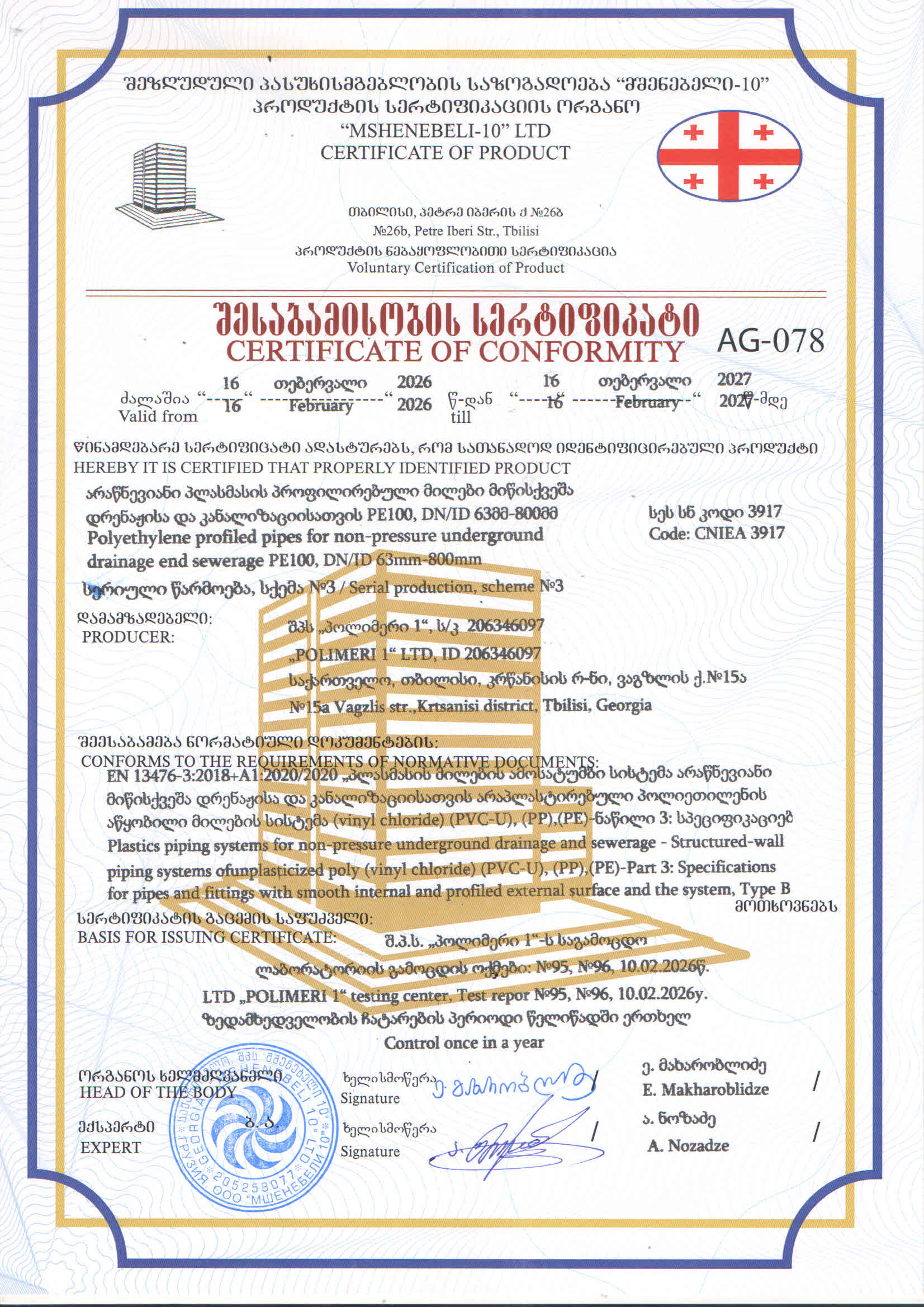 ასევე კომპანია აწარმოებს ევროპული ხარისხიხს მილებს,რომლის საექსპულატაციო პერიოდი შეადგენს 50-55 წელს.